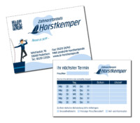 Visitenkarten, Briefpapier, Geschäftspapiere, Briefumschläge, Handzettel/Flyer, Faltblätter, Broschüren, Zeitschriften, Bücher, Plakate, Postkarten, Gutscheine, Blöcke, Aufkleber, Anzeigen, Mailings